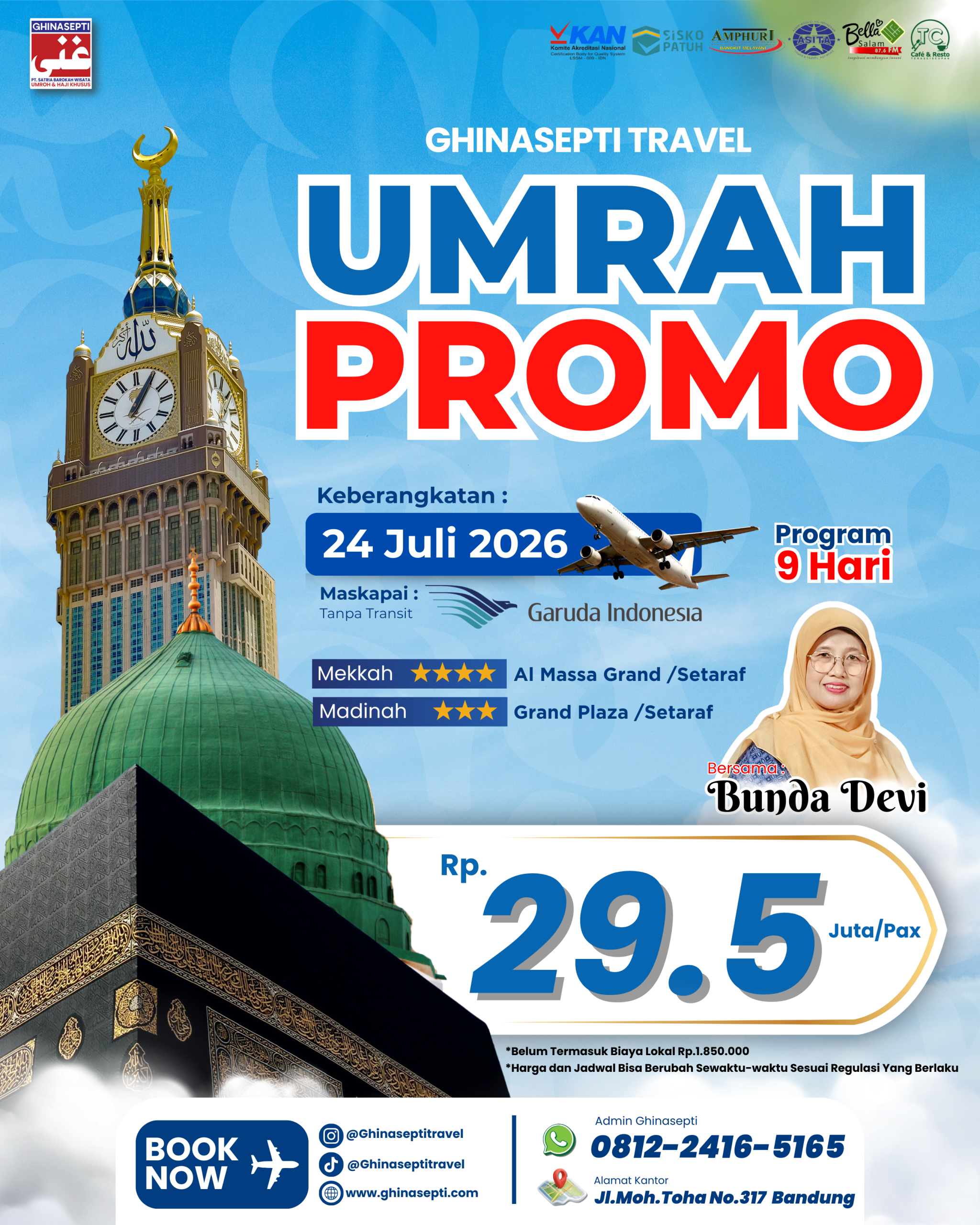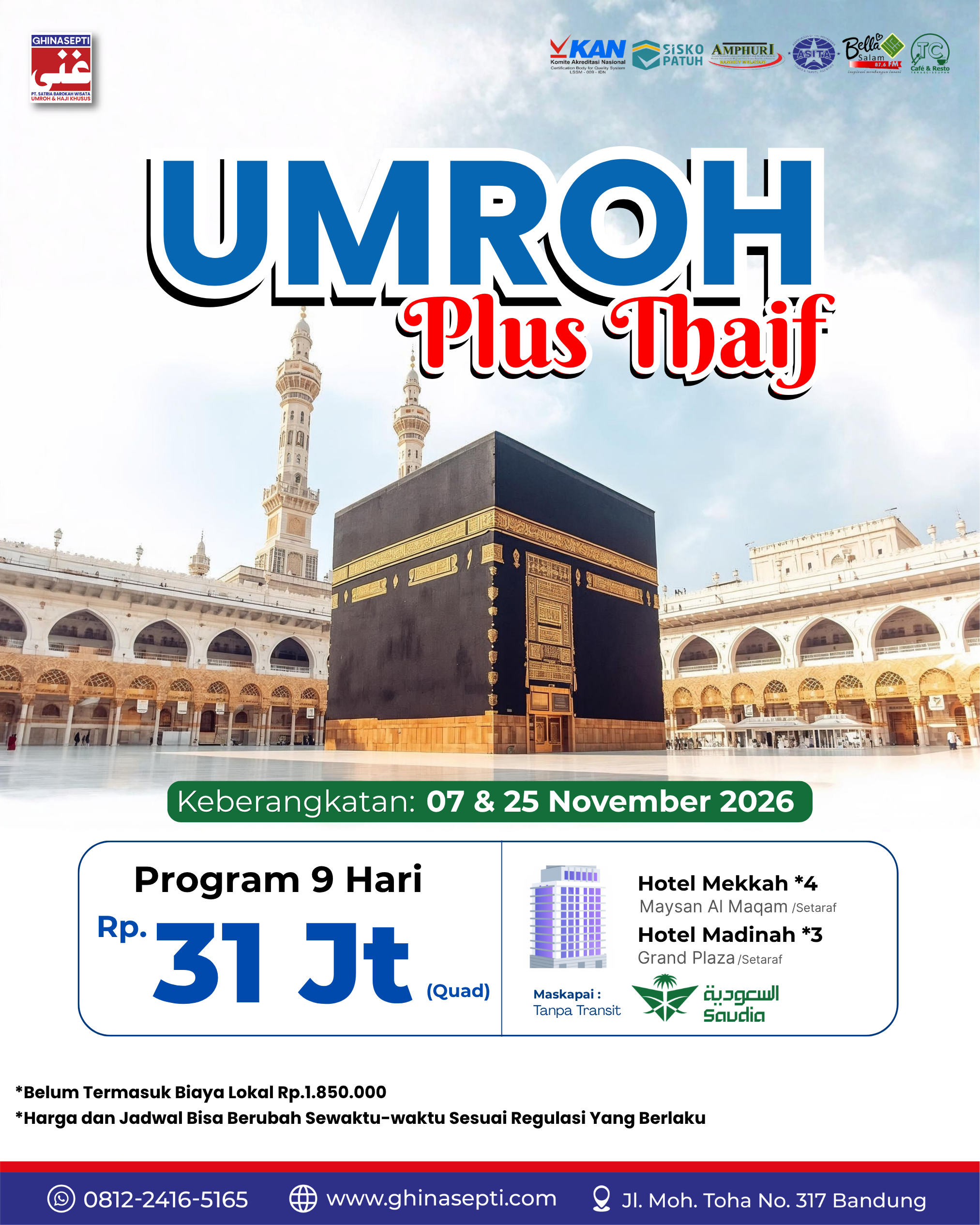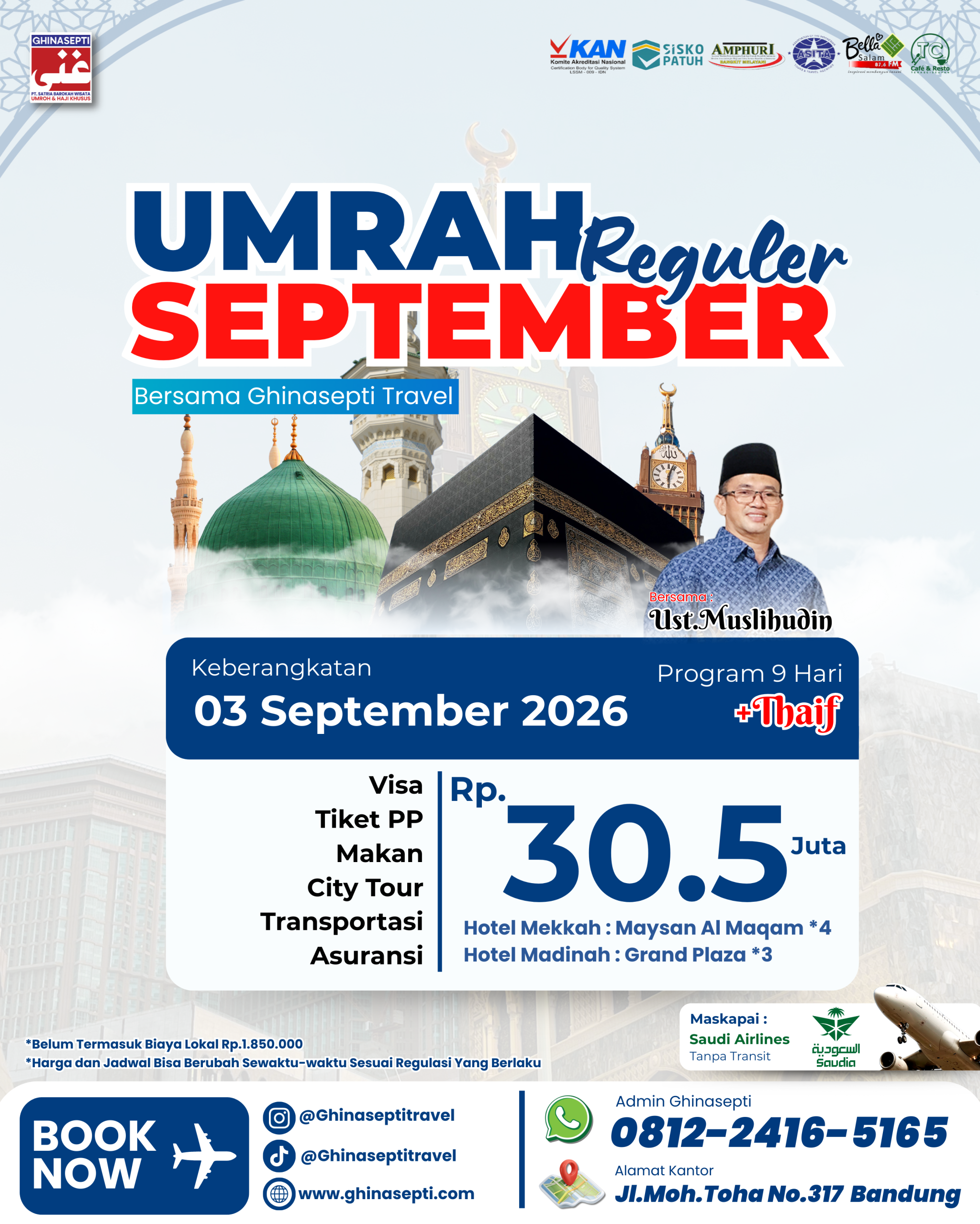 Ghinasepti mendapatkan izin sebagai Perusahaan Penyelenggara Ibadah Umroh dari Kementerian Agama RI dengan SK Menteri Agama Nomor U.361 Tahun 2020. Serta mendapatkan penilaian dari Komite Akreditasi Nasional dengan nilai Akreditasi “A”.