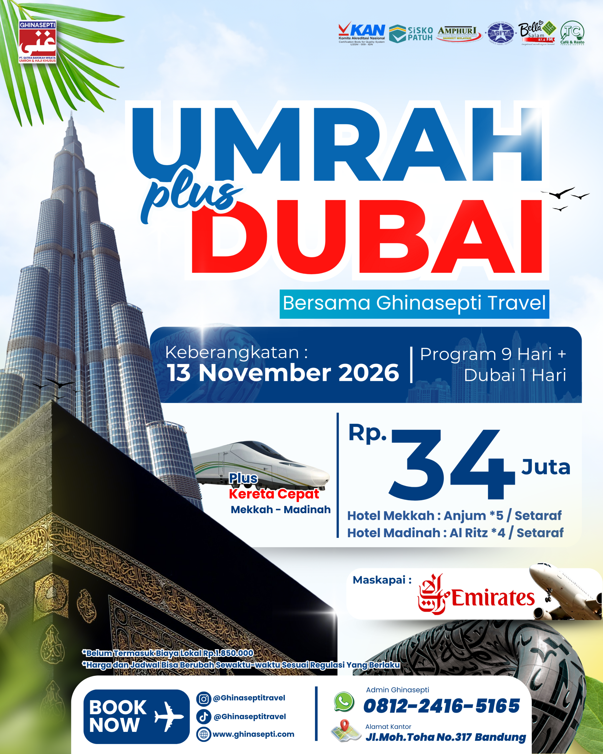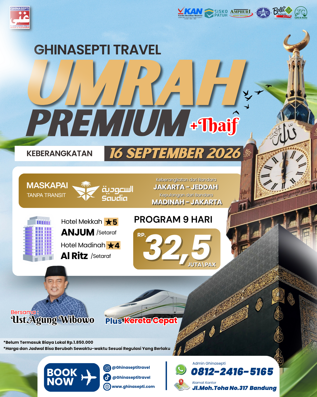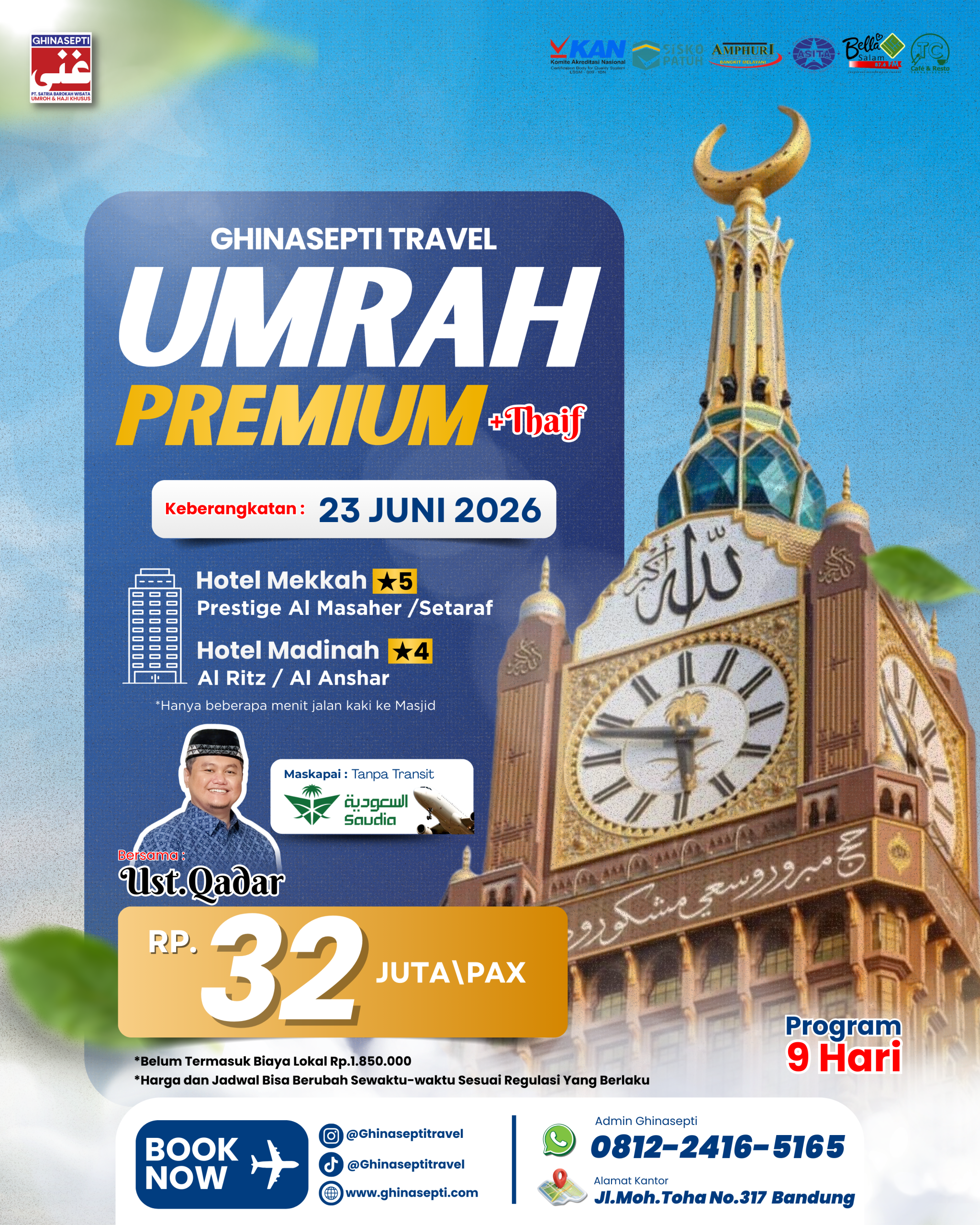Ghinasepti mendapatkan izin sebagai Perusahaan Penyelenggara Ibadah Umroh dari Kementerian Agama RI dengan SK Menteri Agama Nomor U.361 Tahun 2020. Serta mendapatkan penilaian dari Komite Akreditasi Nasional dengan nilai Akreditasi “A”.