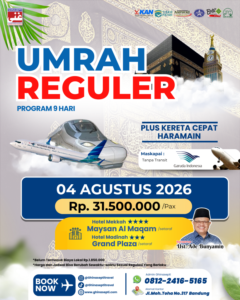 Keberangkatan Berkumpul di Mesjid Baiturrahman Batununggal. Acara Pembukaan dan Do’a Bersama. Berangkat Menuju Bandara CGK. ISHOMA & Pemantapan Bimbingan Manasik di Hotel Area Bandara. Masuk Bandara Int. Soekarno Hatta . Proses Bagasi dan Imigrasi Bandara. Take Off Bandara CGK GA 980 Pkl. 11:25 ETD. Ihlal Ihrom di Dalam Pesawat. Landing Bandara Int. Jeddah Pkl. 17:30 ETA. Proses Bagasi dan Imigrasi Bandara. Perjalanan Menuju Kota Mekkah. Check In Hotel Mekkah. Sholat Jum’at & Pelaksanaan Ibadah Umroh.